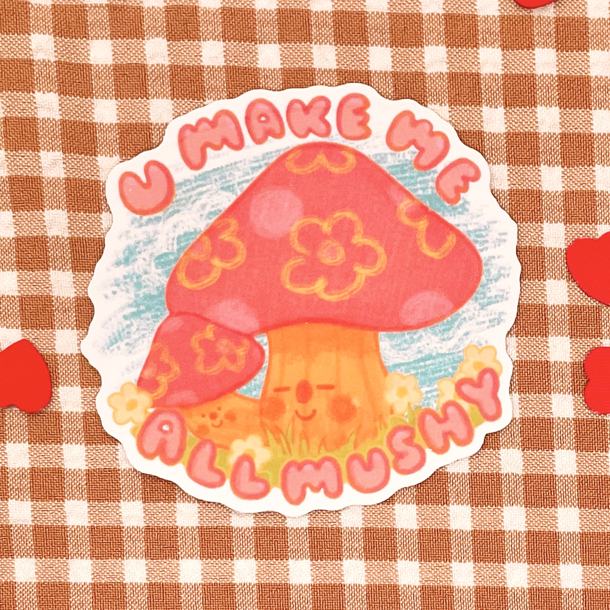 U Make Me All Mushy Mushroom Vinyl Sticker