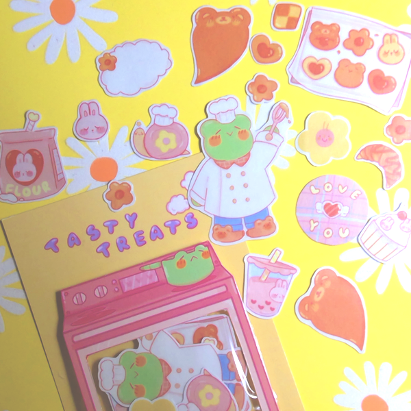 like... a lot of stickers! they're made by me in my crib also the packaging too! we love handmade things