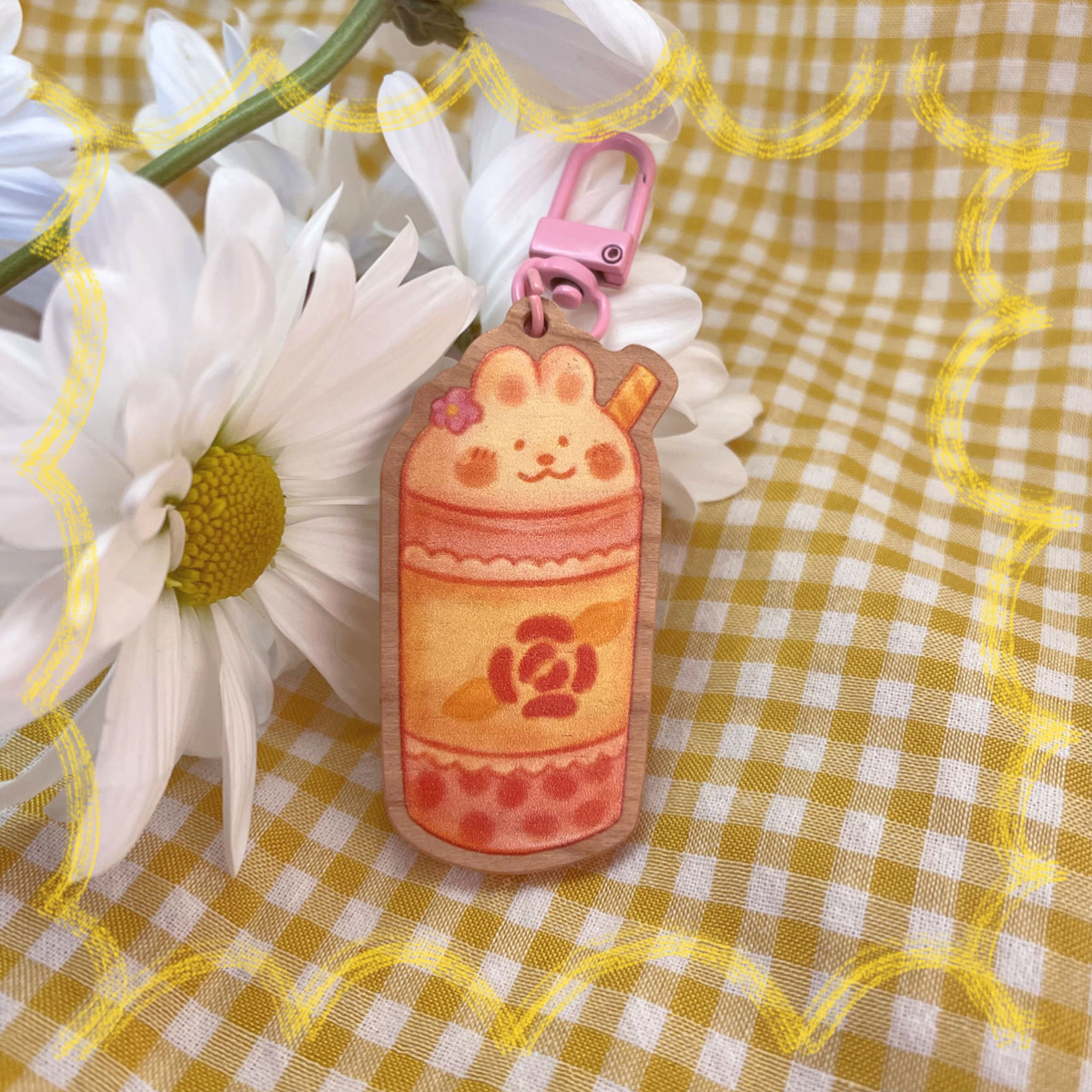 sweet lil 2.5 in rose milk tea boba bunny charm!
